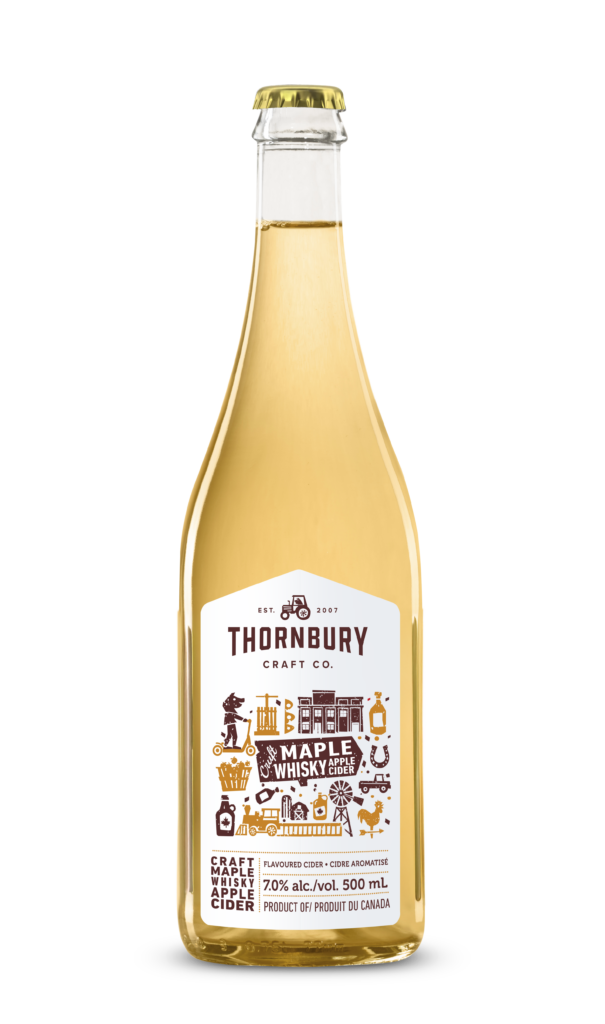 A smooth, warming cider aged in Canadian whisky barrels with a hint of local maple sweetness.